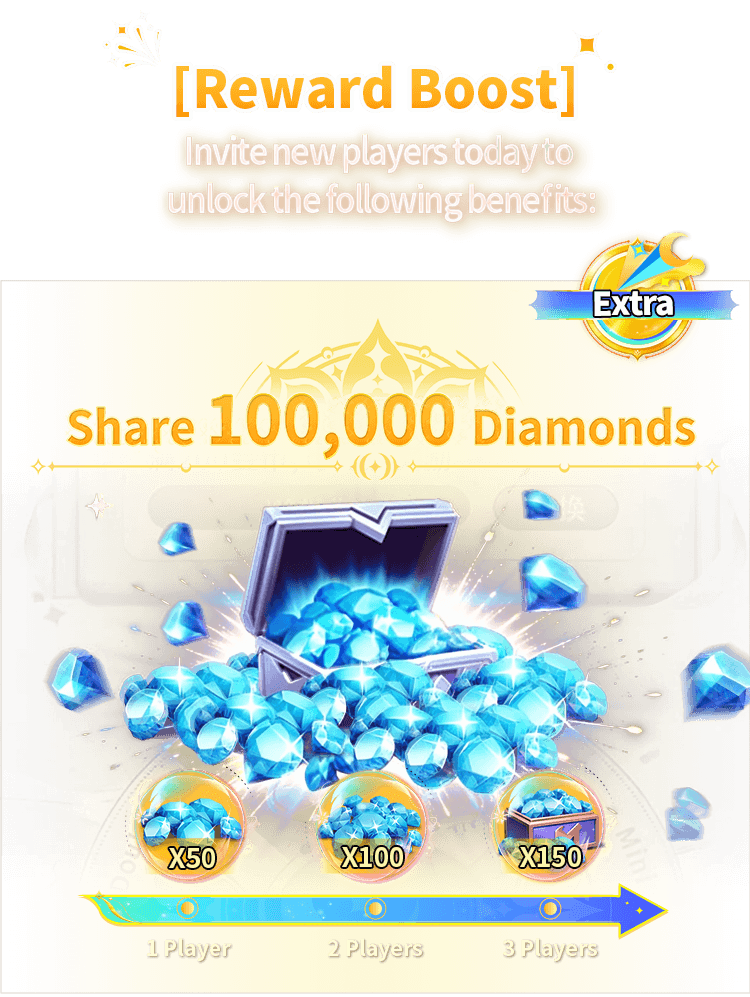 Simply invite 2-3 qualified new or returning players to instantly reach 50,000 Gold and win Diamond or Skin rewards! Plus,you have a chance to win extra cash or an OPPO phone!